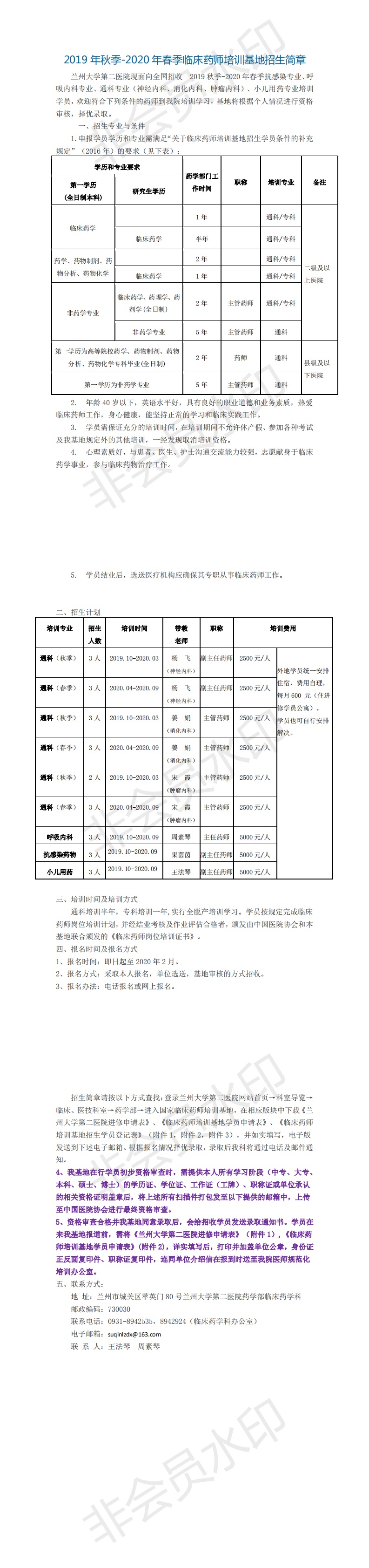 2019年秋季——2020年春季临床药师培训基地招生简章