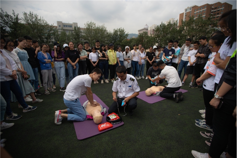 活动主要培训内容包括成人心肺复苏术、止血包扎术、固定搬运术、成人气道异物梗阻解除术、婴儿气道异物梗阻解除术、AED(自动体外除颤仪)使用及急救科普知识和健康素养现场讲解,共有1200余名学生及教学工作人员参加。
