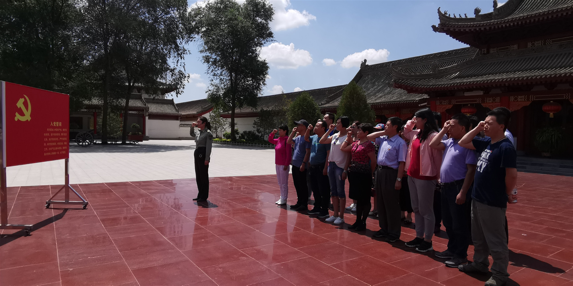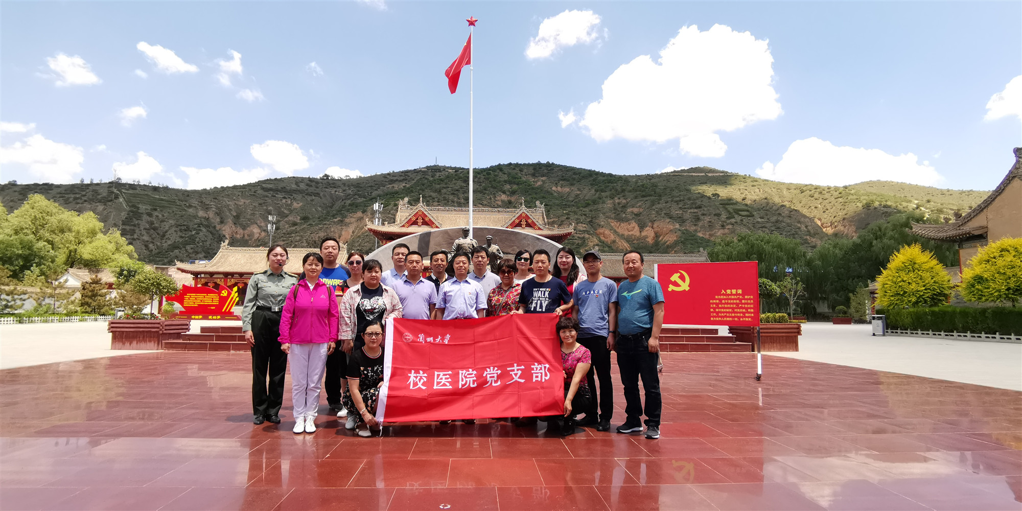 7月10日,校医院党支部在静宁县中国工农红军长征界石铺纪念馆和会宁红军会师塔开展主题党日活动。在鲜艳庄严的党旗前,全体党员重温入党誓词。在毛主席塑像前,全体党员和入党积极分子心怀敬仰鞠躬。随后,大家参观了毛主席居住过的农家小院和每一个陈列文物,聆听中国工农红军五进静宁的伟大壮举和长征途中艰苦奋战的动人事迹,认真观看了静宁籍老红军余新元的家国情怀事迹短片和由我校挂职锻炼的6名学生党员创作的歌曲《界石·新时代进发》视频。红军楼的砖瓦、陈列室的钱匣、干瘪的布袋、白色的战马,无不讲述着一个个震撼人心的红色故事,无不述说着一段段可歌可泣的英雄事迹,使参加活动的党员和入党积极分子接受了生动的革命传统教育,对长征精神有了更加深刻的理解。