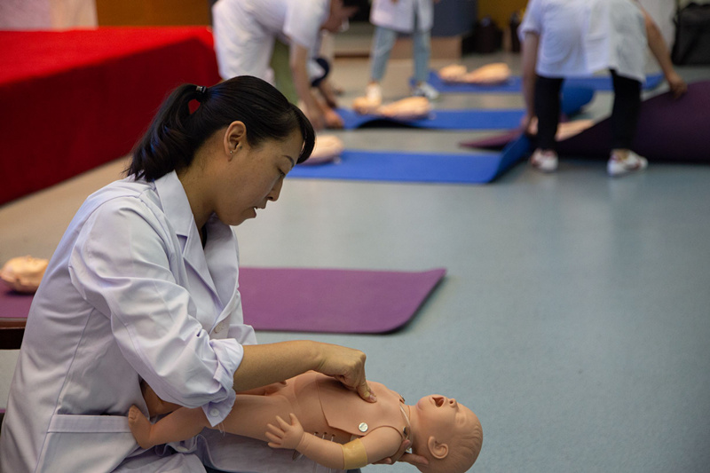 关慧娟护士长现场演示婴儿异物卡喉急救手法及海姆立克手法的操作过程