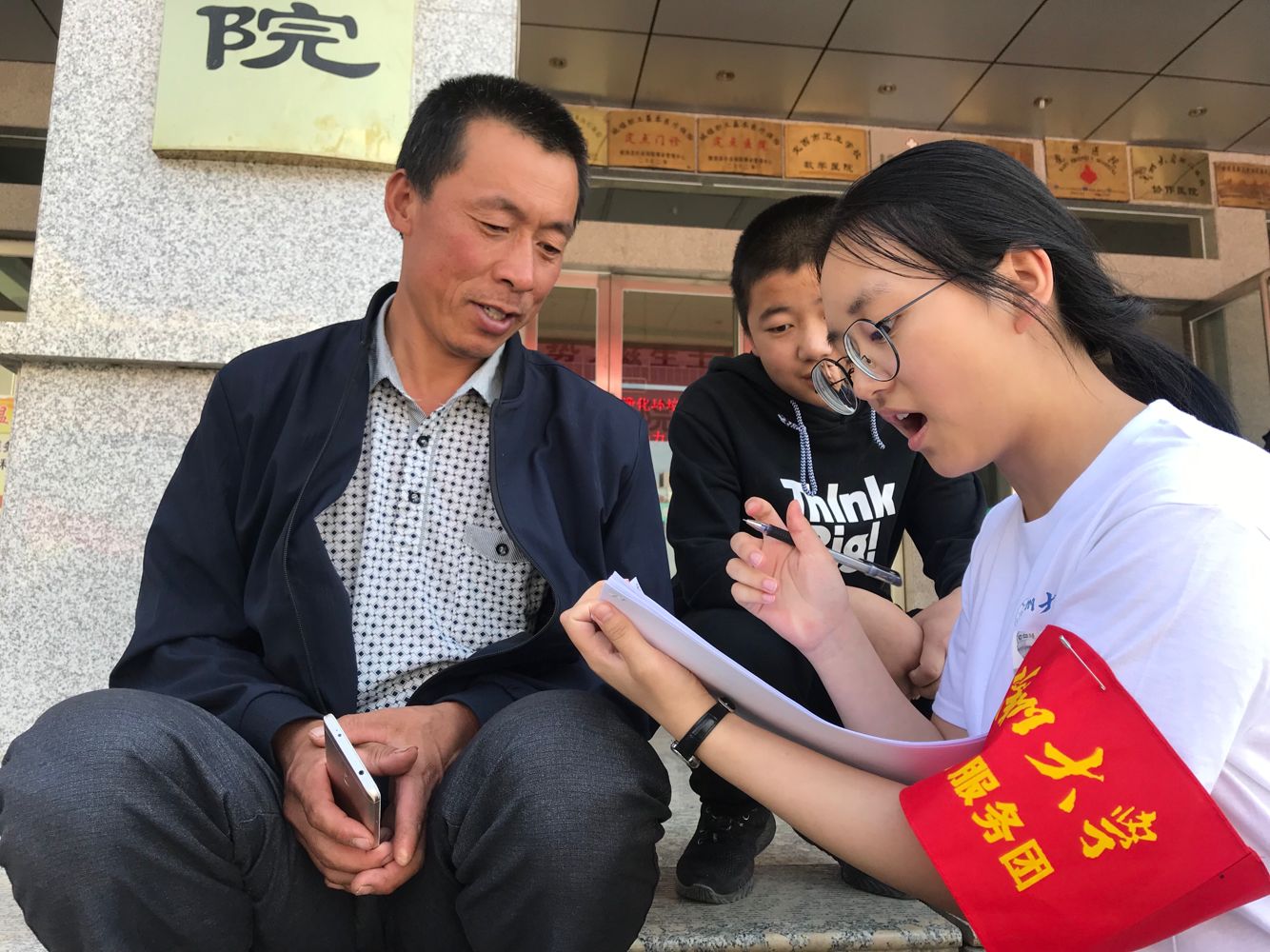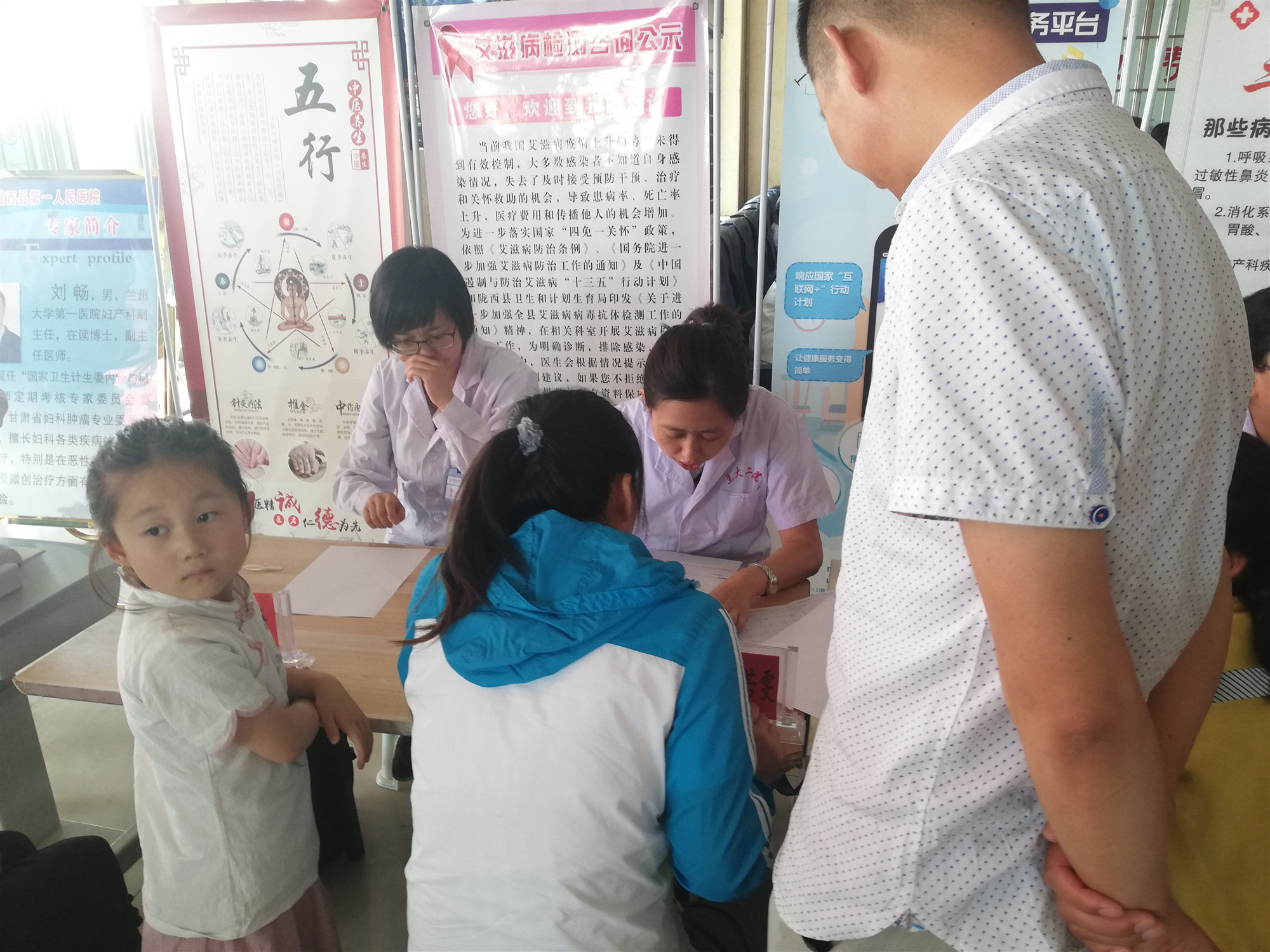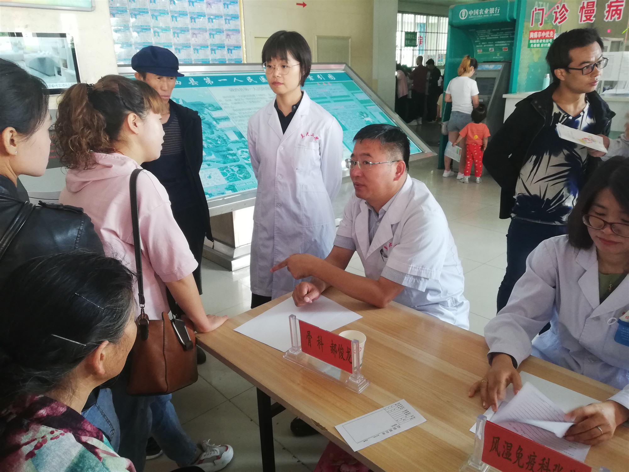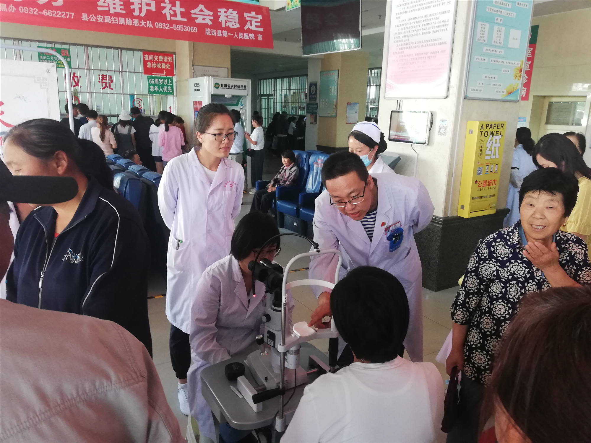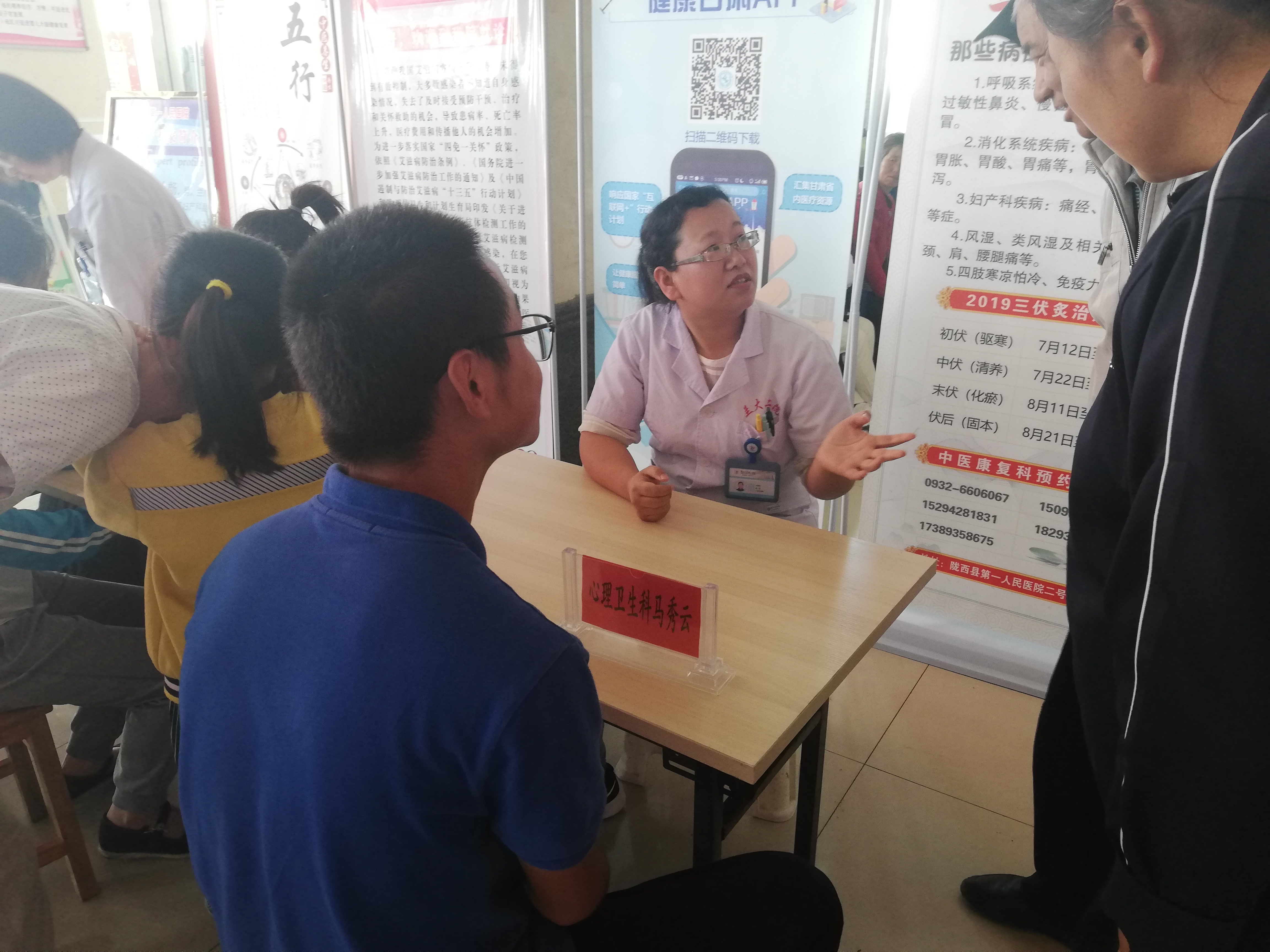 会后,畅兆锋带领“以爱为名,携手同行”——立博欧赔指数赴甘肃省陇西县第一人民医院医疗服务暑期社会实践团成员与专家们开展了义诊活动。现场前来咨询问诊的患者络绎不绝,专家们耐心地为群众诊断病情,并根据病人的症状进行相应的指导及治疗,并提供测量血压、血糖等健康检查,为慢性病患者指导日常用药,讲解卫生常识,宣传保健知识,还引导社区居民了解我院就诊程序,方便快捷就医。