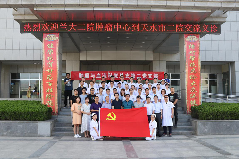 绚烂七月,初心如磐。在庆祝党的98岁生日,迎接伟大祖国70华诞之际,为进一步提高肿瘤诊疗的区域协作和交流研讨,推动优质医疗资源优化整合、合理流动、下沉基层。7月25日,兰大二院肿瘤中心主任陈昊带领专家团队齐聚羲皇故里,渭河之滨,携手天水市第二人民医院开展“红色七月·健康先行”主题活动。