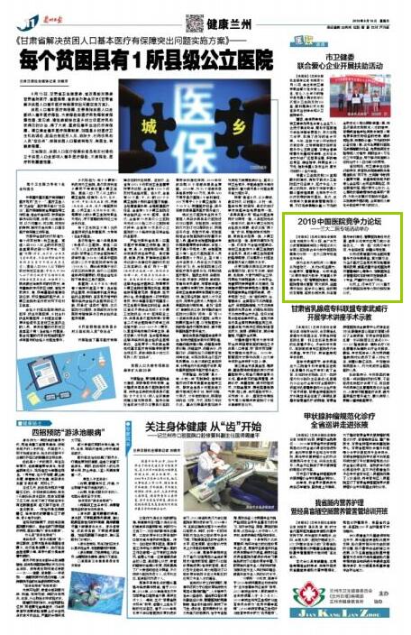 【兰州日报】2019中国医院竞争力论坛 ——兰大二院专场活动举办
