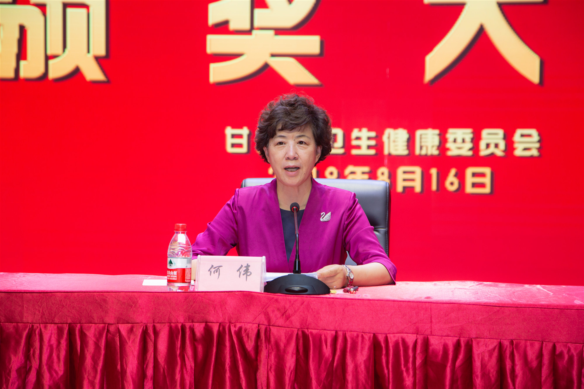 8月16日,甘肃省第二个“中国医师节”优秀医师优秀医师团队颁奖大会在我院召开,何伟副省长出席会议并讲话,代表省政府向全省广大医务工作者致以节日的问候和崇高的敬意,向获奖的优秀医师、优秀医师团队表示热烈的祝贺!省卫生健康委主任郭玉芬、党组书记杨陇军、省纪委监委驻省卫生健康委纪检监察组组长袁秀智,省卫生健康委副主任张浩出席会议。