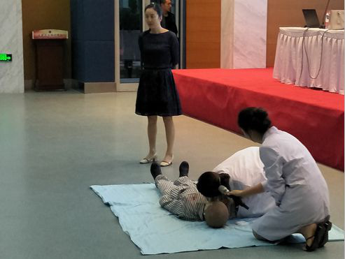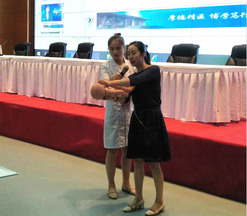 培训中,秦静就电信工作突发急救的应对措施、紧急处理、规范操作技能、心肺复苏术的重要性等进行了详细的讲解,同时现场演示婴儿异物卡喉急救手法、海姆立克手法的正确操作方法,并对学员演示的每一个动作进行了认真细致的指导,保证学员掌握正确操作。培训现场,师生们目不转睛、仔细聆听、认真观摩、主动实践。