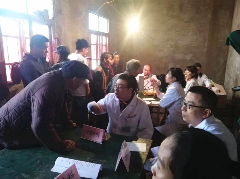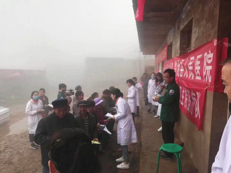 义诊当天,尽管雨雾蒙蒙,道路崎岖泥泞,却阻挡不了医疗队队员们前行的步伐。本次义诊设置神经内科、神经外科、妇产科、内科、骨科等咨询台。义诊中,前来咨询的患者络绎不绝,队员们认真接待每一位就诊群众,免费测量血压、血糖,发放常规药品,耐心细致地回答大家提出的各种问题,仔细查看患者的各项检验结果,并从用药指导、日常饮食、注意事项等多方面制定诊疗计划,同时对常见病、多发病、慢性病的预防进行详细讲解,并对脑血管病高危人群进行健康宣教,有效提高了广大群众的防病意识。医疗队专家们精湛的技术和耐心的诊治获得村民们的一致好评。