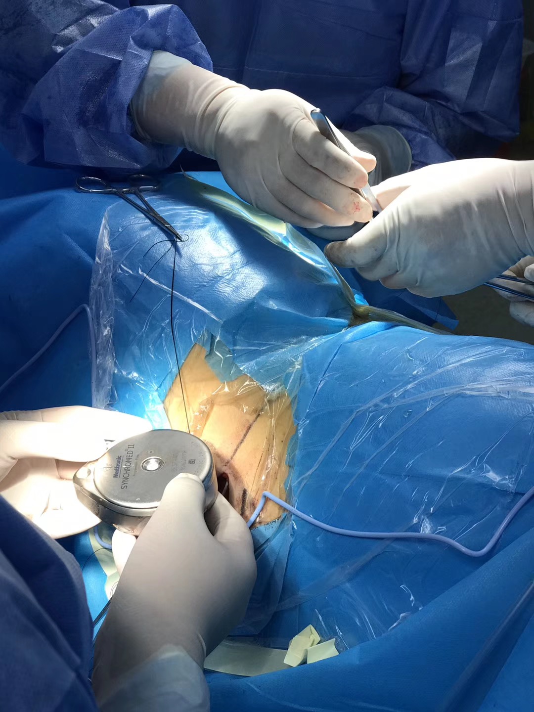 该恶性肿瘤患者多发转移侵及腰椎,腰部剧烈疼痛,彻夜难眠,应用多种镇痛药和镇痛方法均效果不佳,生活质量非常差。经我院疼痛科副主任王宏沛和多名医师积极讨论、与患者及家属协商后,决定为患者实施鞘内吗啡泵植入术。术后患者无明显不适,仅仅给予蛛网膜下腔0.2mg吗啡,就达到了明显的止痛效果,并持续了数天。