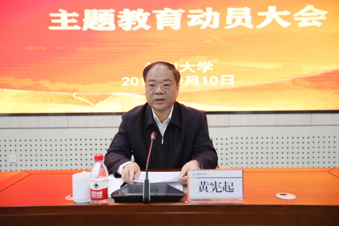 黄宪起在讲话中对学校党委认真谋划、精心组织、周密部署主题教育各项工作予以充分肯定,并就接下来落实主题教育各项任务提出四点意见。一是聚焦主题主线,深入学习贯彻习近平新时代中国特色社会主义思想。中管高校作为高等教育的“国家队”“排头兵”,要在学懂弄通做实习近平新时代中国特色社会主义思想上取得新进步,达到新高度,在坚持党的全面领导,加强党的建设上走在前、做表率。二是把握总体要求,努力实现“五句话”目标。紧紧围绕为党育人、为国育才,突出党的政治建设,坚持立德树人,着力整改解决党委领导下的校长负责制、基层党组织建设、教师队伍建设、意识形态工作、学生社团等工作中存在的突出问题,指导推动各级党组织牢牢把握总要求和工作目标,教育引导党员干部以彻底的自我革命精神解决违背初心和使命的各种问题。三是坚持高起点高标准,统筹推进四项重点措施。要学做结合,查改贯通,抓好学习研讨、调查研究、检视问题、整改落实各环节工作,推动主题教育高起点开展,高标准推进,取得扎实成效。四要严格履行主体责任,切实防止形式主义、官僚主义。学校党委要认真履行主体责任,加强组织领导,强化督促指导,全面从严、全程求实、全员投入,确保主题教育高质量开展。学校领导班子和领导干部要坚持更高标准,更严要求,带头学、带头查、带头改,充分发挥示范带头作用。院系级领导班子要参照学校领导班子做法,不折不扣抓好主题教育实施。