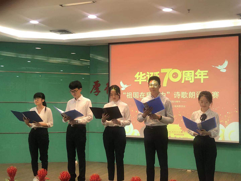 9月27日下午,为庆祝中华人民共和国成立70周年,由我院团委举办的“祖国在我心中”诗歌朗诵比赛在会议室(三)举行。党委书记杨建文出席比赛。相关处室负责人、全体团干部、青年职工等200人参加比赛。