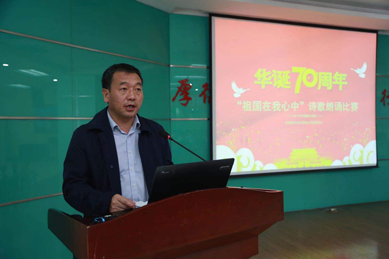 9月27日下午,为庆祝中华人民共和国成立70周年,由我院团委举办的“祖国在我心中”诗歌朗诵比赛在会议室(三)举行。党委书记杨建文出席比赛。相关处室负责人、全体团干部、青年职工等200人参加比赛。