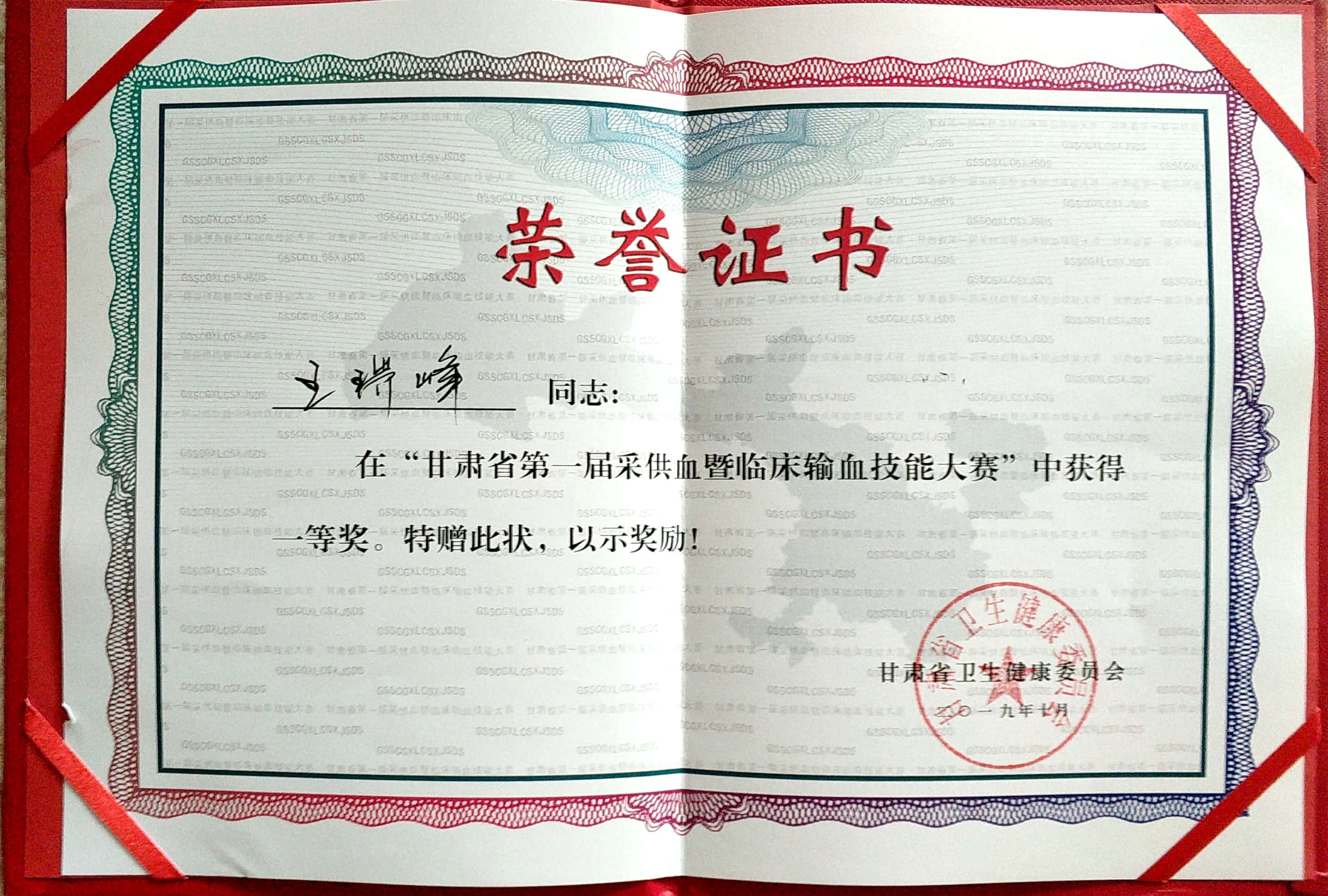 【喜讯】临床输血科王瑞峰代表我院在“甘肃省第一届采供血暨临床输血技能大赛”中获一等奖