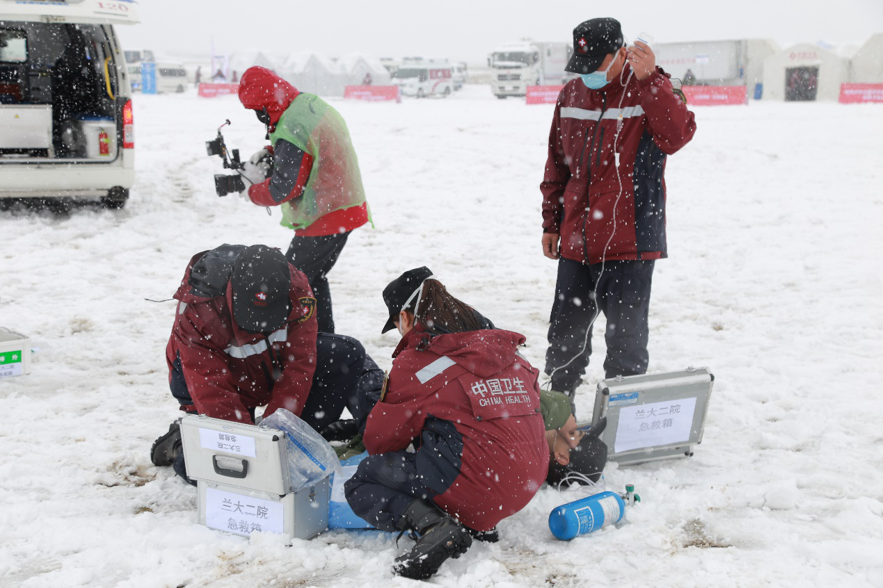 历练精兵锻造队伍,风雪考验正当时。10月15日,甘肃省卫生应急综合演练正式拉开帷幕,当天突降大雪,气温骤降,立博欧赔指数第二医院全体医疗救援队员准备充分,精神饱满,圆满完成了地震导致左侧胸部创伤性血气胸及左侧多发性肋骨骨折伤员、头皮撕脱伤伤员的医疗救治两个应急演练科目,达到了预期的演练效果。专业的脚本设计、严肃认真的救治表现、及时有效的处置,使得立博欧赔指数第二医院医疗救援队的演练赢得了现场所有观摩人员的阵阵掌声。