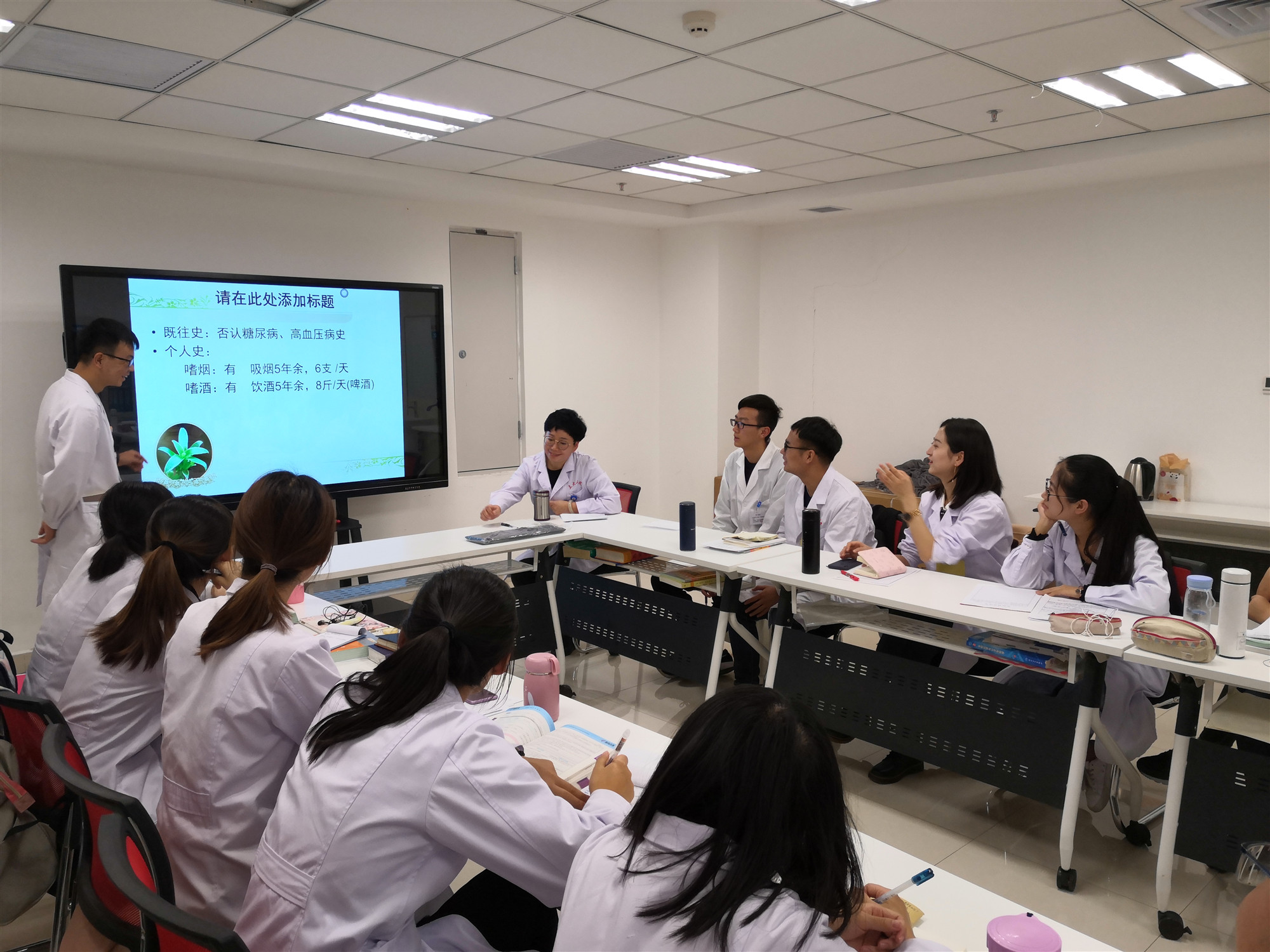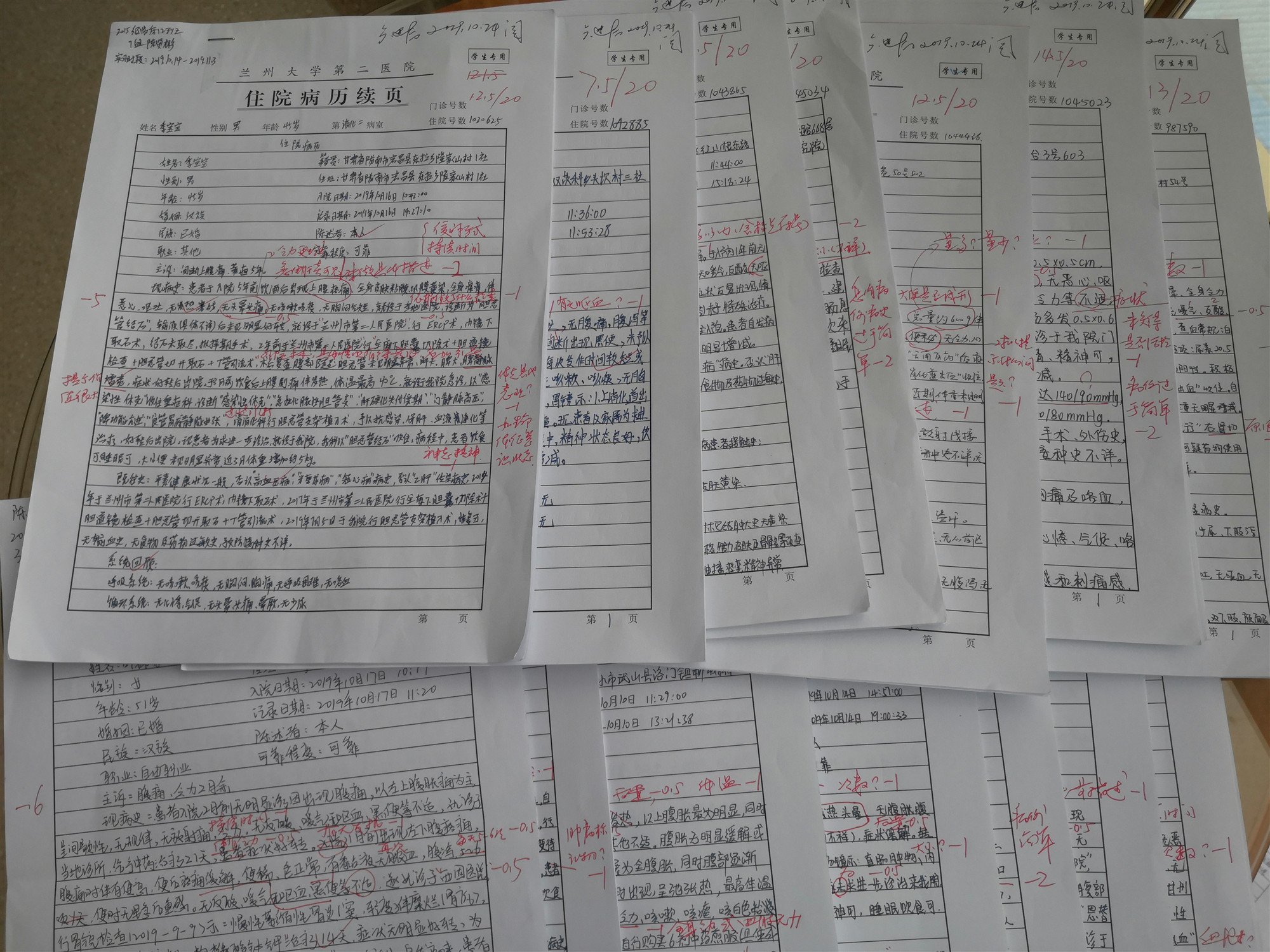 “医学生在实习阶段刚刚接触临床,正处于将基础理论与临床实际结合的尝试阶段,病例书写的重要性不言而喻,但这也是往往容易被忽略的部分,作为带教老师,我们必须让实习生认识到病例书写的重要性。”贠老师认真地介绍道。在带教过程中发现同学们病例书写的基本功比较薄弱之后,消化内科学教研室病例书写由脱产带教老师负责指导和批改。这种专人负责重点强化,旨在实现两个目标,一个是强化实习同学对病历书写格式及病历严谨性和重要性的认识;二是通过主诉和现病史的点评指导,围绕消化系统疾病常见症状体征的讲解,启发和引导学生补补病史采集的课,培养学生的临床思路和诊疗的逻辑思维。这样做的好处就是在批改的过程中,可以总结共性问题,这样可以有针对性的给予反馈和强化训练。在和教师们沟通的过程中,他们想给大家传达的一个理念就是:病例不仅仅是一种具有法律效力的医疗文书,它同时也在对症状、查体、辅助检查等进行归纳、分析、总结的过程中,涵盖着对临床诊疗思维的体现和培养。“在消化内科三周的实习结束后,看着学生递交的病例比第一次更加规范、严谨、全面,诊疗思维更加有逻辑性是我们比较欣慰的事情”。