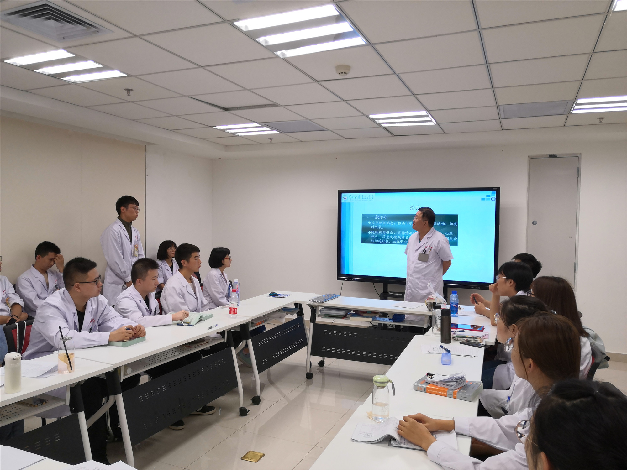 “以前,教学查房和医疗查房界限不清,存在医疗查房代替教学查房的问题。但现在跟以往相比,教学查房确实取得了很大的进步。”消化内科副教授于忆老师说,“如何开展好教学查房是我一直思考的问题?既然做得不好,那就要学习。为了规范教学查房,外出观摩学习兄弟院校教学查房是我们做的第一步”。贠老师补充道:“结合院内培训和外出观摩,同时结合本科室病种特点和临床经验,一周一次的教学查房开展有了一些进步,但是还需要学习的东西很多。”上周,有幸观摩了于老师的教学查房,她认真耐心的查体指导过程、引导式提问、热情洋溢的讲解让人印象深刻。“如果听不到肠鸣音,如何诱发呢?”“针对这个病人,心脏听诊需不需要呢?”“下肢浮肿要不要看呢?”“其他同学们还有没有补充呢?”……于老师认真耐心地观察实习学生查体过程,及时纠正学生的不足,诱发性地指导学生,帮助学生及时提取理论知识,促进理论知识和临床实际的有效结合。回到示教室后,于老师继续补充,在师生互动、热烈的讨论中结束了整个教学查房。教学查房是实践教学的重要环节,是培养医师临床思维能力和临床实践能力的有效途径,消化内科学也在不断改进中进步,相信他们会越来做好。
