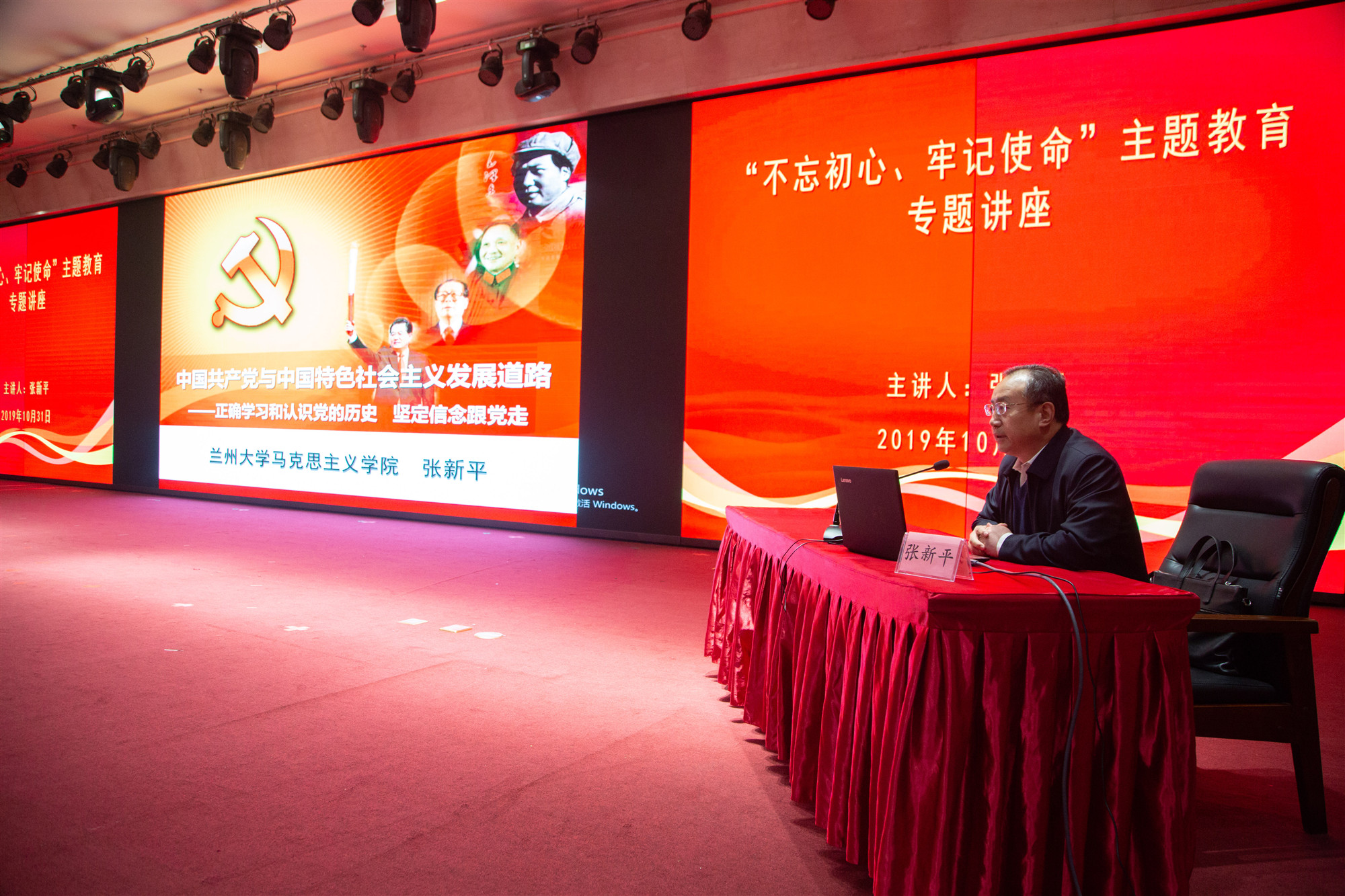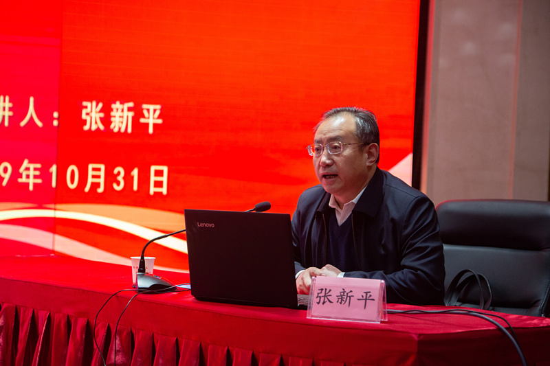 讲座中,张新平作了题为《中国共产党与中国特色社会主义发展道路——正确学习和认识党的历史、坚定信念跟党走》的精彩讲座。他从波澜壮阔、曲折探索、改革创新、历史反思四个方面详细讲解了中国革命的道路、社会主义建设与中国道路探索、中国特色社会主义发展道路的形成及其世界意义、中国特色发展道路探索的反思。带领大家回顾了中国共产的发展历史、讲解了国共的历史故事、深度探索了中苏关系的始末。同时,全面系统的分析了党的十一届三中全会、党的十八大等党内重要会议精神,同时强调了开展“不忘初心、牢记使命”主题教育的重要性和必要性。
