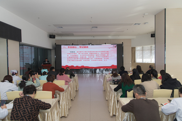 杨建文以《不忘初心、牢记使命、自我革命、团结奋斗,为建设新时代一流研究型大学医院而努力》为题作了精彩的讲座。他从不忘初心、牢记使命;自我革命、打铁必须自身硬;团结奋斗,努力建设新时代一流研究型大学医院三个方面入手,详细讲解了什么是党的“初心”和“使命”、为什么要“不忘初心、牢记使命”、如何才能做到“不忘初心、牢记使命”,基层党组织建设中出现的问题,对照检查我院存在的问题。他强调全院各级干部、全体党员、广大职工,要振奋精神,不负时代,敢于担当,锐意进取,脚踏实地,争创一流,以自己的实际行动,书写人生华章。授课内容层次清晰、内涵丰富,对我院深入学习贯彻习近平新时代中国特色社会主义思想、党的十九大精神、“不忘初心、牢记使命”主题教育具有重要意义和指导作用。