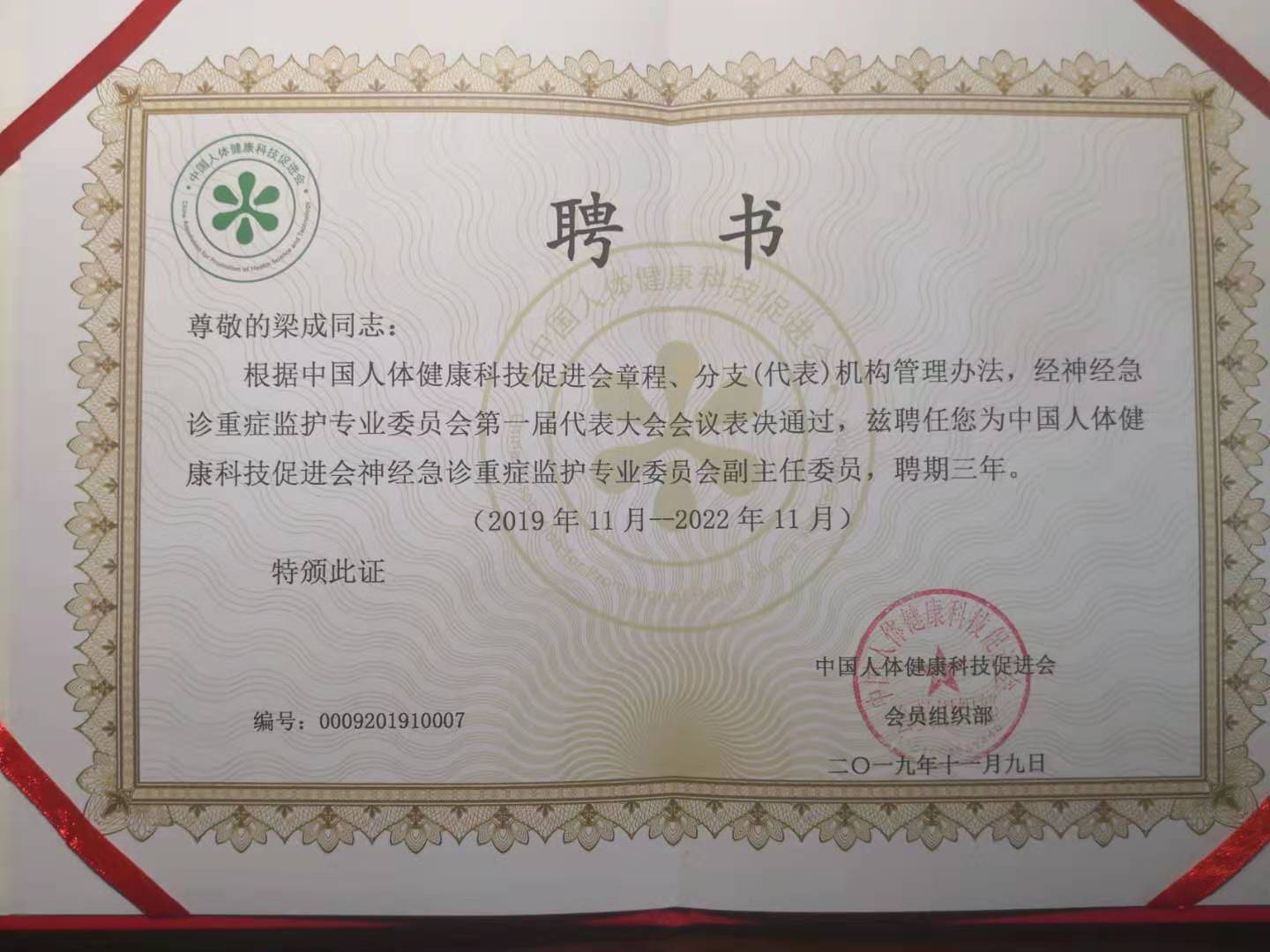 此次梁成当选为神经急诊重症监护专业委员会副主任委员,代表着以首都医科大学宣武医院神经科为主导的中国人体健康科技促进会神经急诊重症监护专业委员会对我院神经急危重症工作的认可与鼓励,标志着我院神经急重症的学术影响力又上了一个新台阶。