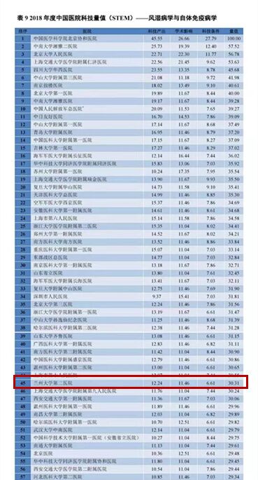 【中国甘肃网】兰大二院多学科位列2018年度中国医院科技量值(STEM)百强榜单