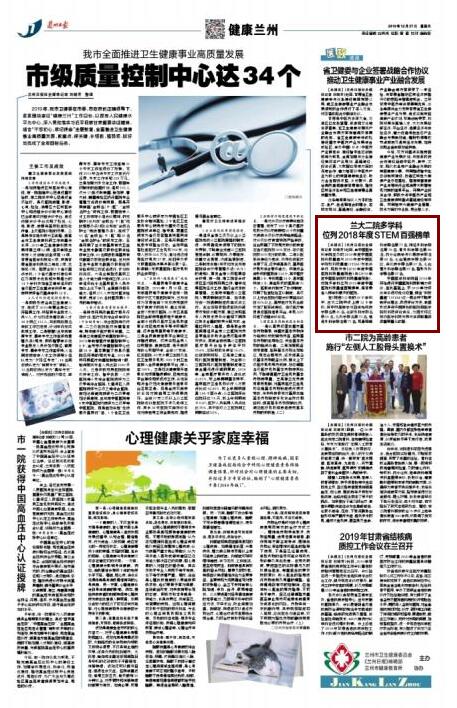 - 上一篇:【新华网】兰大二院多学科位列2018年度中国医院科技量值百强榜单[ 12-27 ]