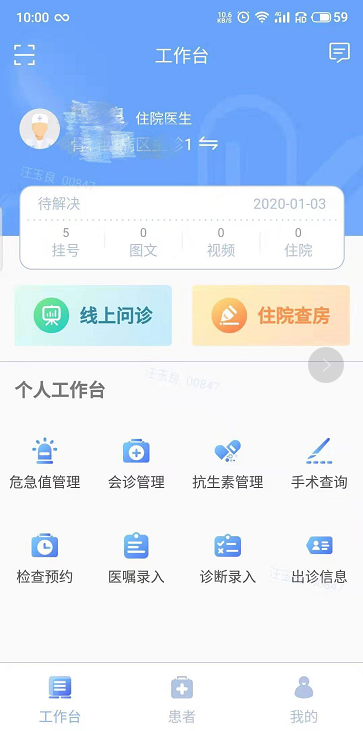 “智慧医生”APP涵盖了HIS系统中门诊、住院患者管理;抗生素管理;检查预约;医嘱、诊断录入、会诊管理;危急值管理等功能,涵盖了HIS医生站的主流功能。