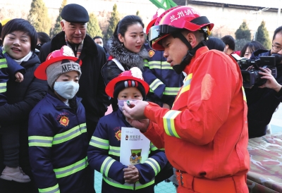 12月30日上午10时,在医护人员和家长的陪同下,孩子们来到了兰州市消防救援支队特勤大队院内,开启了他们的消防站环游之旅。
