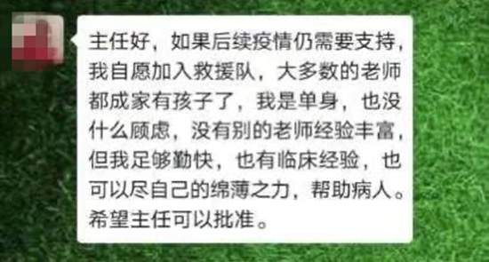 据悉,主动请缨的医护人员中,有已经退休的老院长、老党员,有科主任、带头人,有各科室的中流砥柱,也有初出茅庐的医学新人,还有非常多的护理骨干。