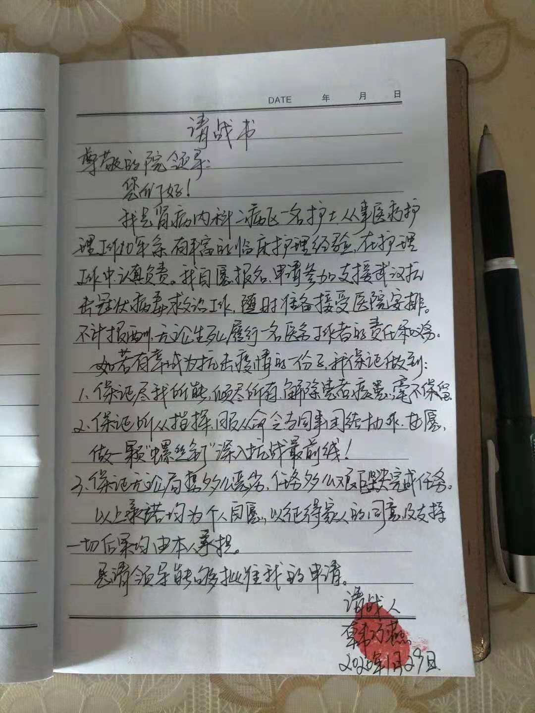 他们之外,还有同志主动请缨参加疫情防控斗争,做一颗“螺丝钉”深入到抗战最前线,不计报酬,无论生死,履行一名医务工作者的责任和义务。