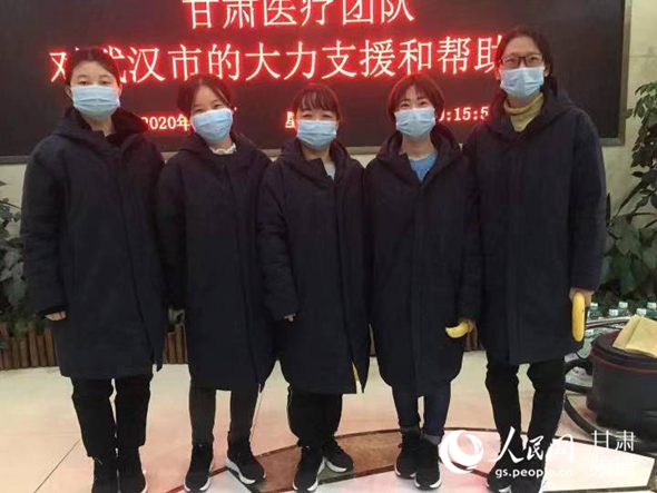 梁玉瑛(中)和援鄂医疗队的战友们。(兰大二院供图)