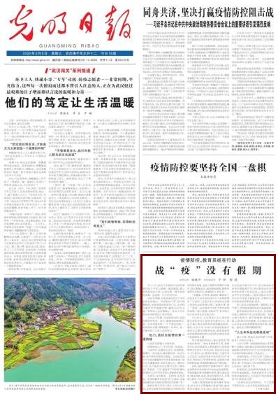 与此同时,教育部正在统筹整合国家、有关地方和学校相关教学资源,提供丰富多样、可供选择、覆盖各地的优质网上教学资源,全力保障教师们在网上教、孩子们在网上学。