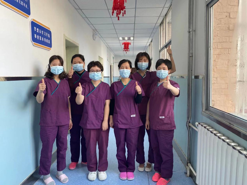 王文:她是大家的老师,更是我们的“妈妈”。平时里除了在工作上帮助我们,更是大家生活上的老师、长辈,所以我们大家都叫她“王妈”。她之前参加过非典病人的救治和三年前我院乙脑病房的救治。这次新冠疫情之下,她虽然很想在退休前再和大家一起战斗一次,但是因为家庭状况,遗憾不能进入隔离病房,但是不忘关心每一个在前线的“战士”们,给大家带来心里的温暖。