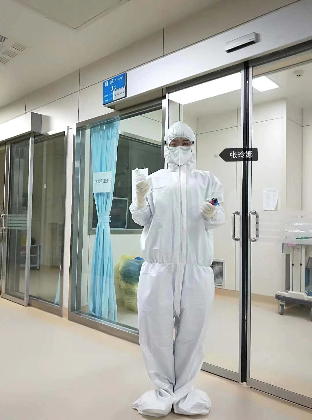 张玲娜:科室的年轻护士之一,由于外科ICU护理人员短缺,她被调去支援,在大年初五的凌晨接到通知,不到半小时就到达了工作岗位。为她的使命感和责任心感到自豪!