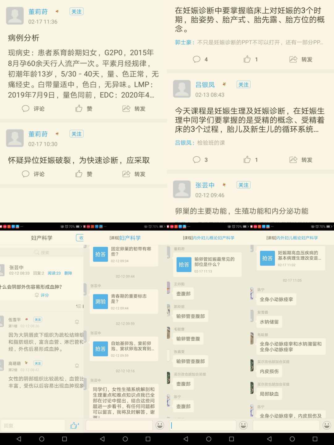 本学期学院共开设理论课41门(71门次)、实验课22门(111门次),通过慕课、学习通APP等平台,2020年春季学期所有理论课已按照原定教学计划开展在线教学工作,同时积极利用网络教学平台,创新教学模式,丰富教学内容,并在部分课程中引入疫情防控相关知识,引导学生树立正确的认识、有效防范。不同于传统教学方式,各教研室、承担教学任务的教师为保障教学质量,更加用心备课、精心准备案例、花心思设计课程、细心观察学生的讨论、费心批阅随堂测验。我们的老师摇身一变,成为镜头前的“主播”,采用直播、录播、录屏的方式授课。线上教学不仅提高了对教师授课的要求,更加提高了学生们主动参与学习的动力,整场气氛空前活跃。目前床旁教学及实际操作的见习课程暂未开课,《临床机能实验学》课程将分次上传操作视屏,供学生预先学习。