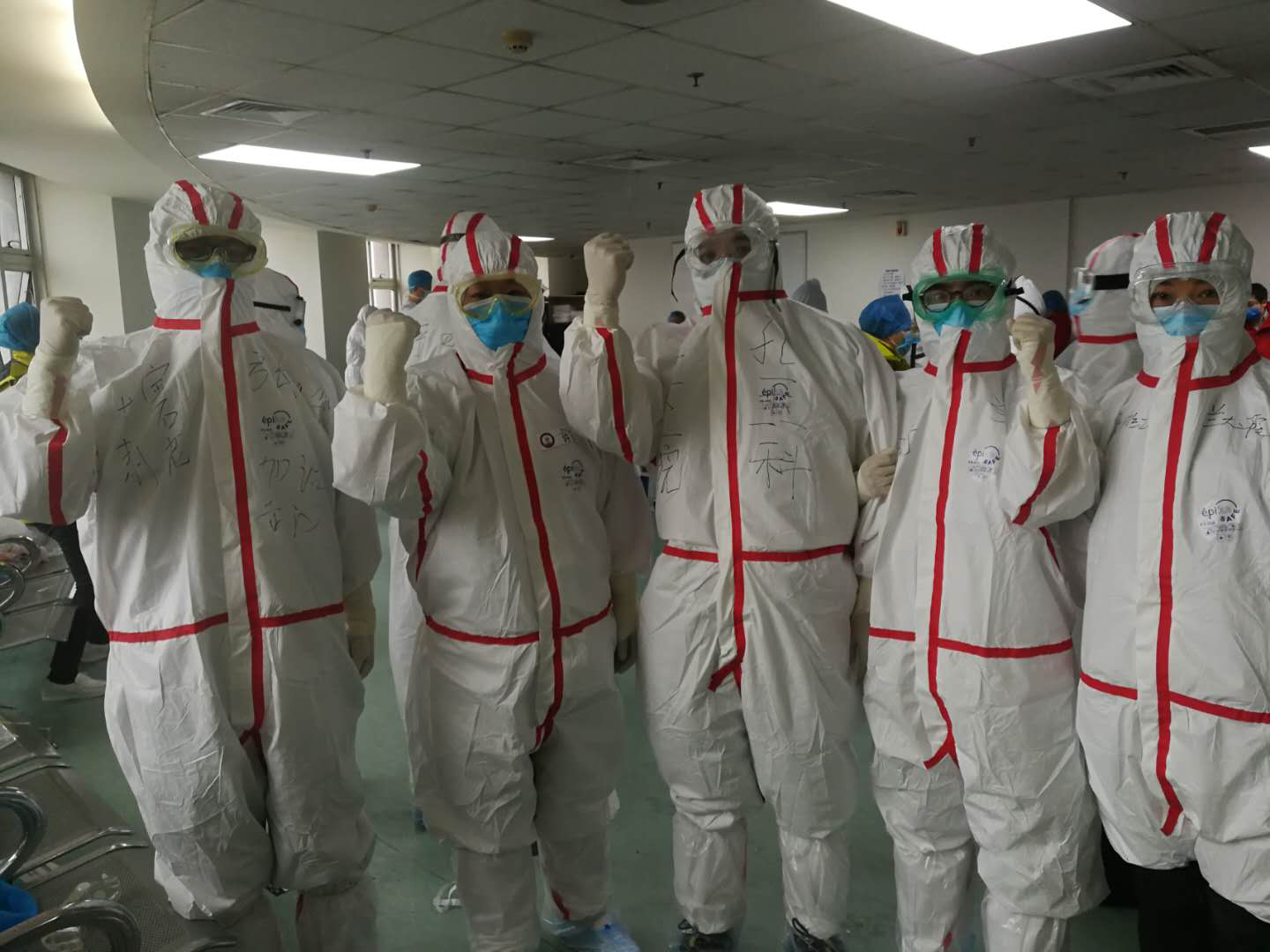 我和我的队友在武汉中心医院呼吸四病区接管援疫工作,专业的老师培训穿脱隔离衣的流程及注意事项。让我们一起加油,打赢这场没有硝烟的战争。