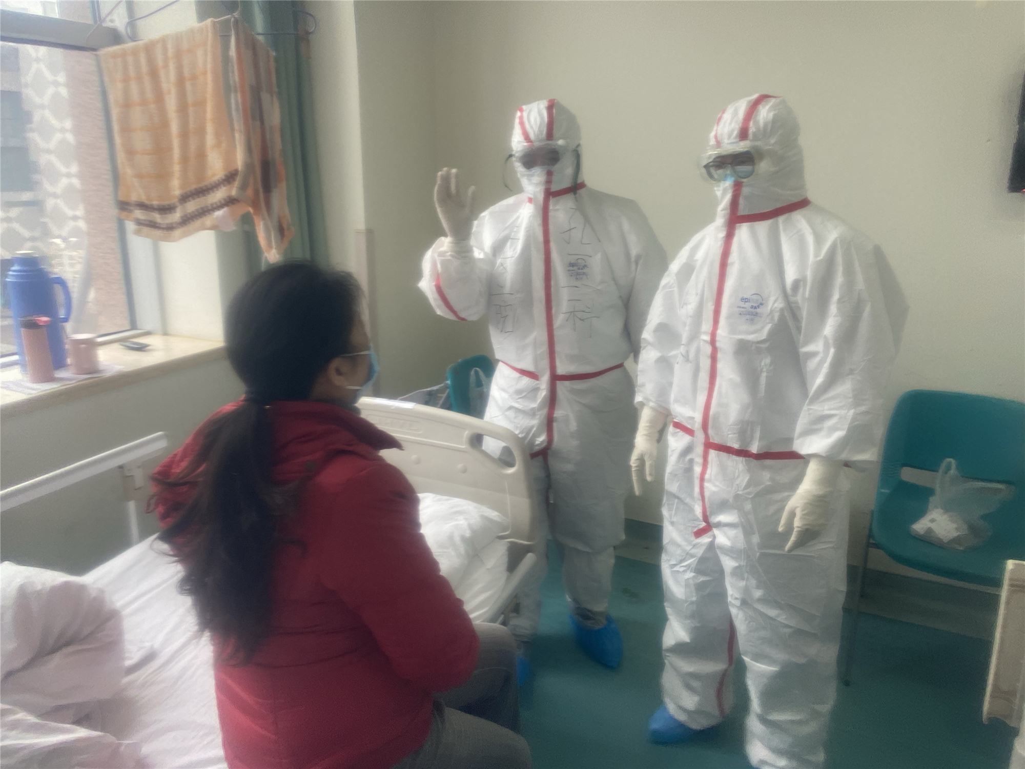 有天查房时我记得有位五十岁的女性患者,新冠肺炎,甲状腺功能减退,焦虑症。她情绪激动,不配合治疗,整个精神状态很差。经过我们的沟通,讲清楚生病的利害关系和治疗的希望,鼓励患者积极调整心态,共同抗击病魔。