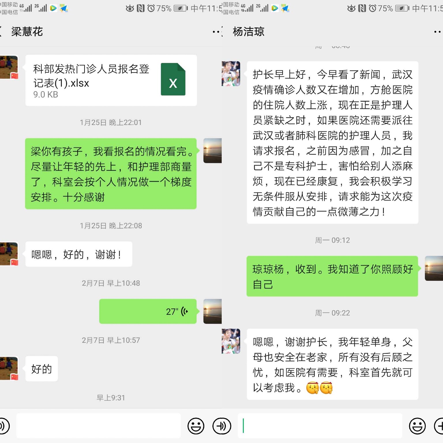 科室年龄最小的“96后”护士刘喜红,作为我院支援兰州市肺科医院第3批医疗队成员之一,于2月8日前往兰州市肺科医院开展支援工作,并和团队协同完成了我省首批危重症新冠肺炎患者核酸转阴后转入普通病房的后续护理工作,在该患者出院当天撤出兰州市肺科医院,完成了为时8天的支援工作。在肺科医院工作期间,她运用本科室专业,积极指导患者做下肢功能锻炼,普及VTE预防知识。提起这次经历,她曾说最感动的是临行前张亚敏护士长给自己细心准备的生活用品、是工作期间各位领导和同事的牵心挂念、是战友之间的相互照顾与扶持、是出院时患者感动的泪水。青春无悔,未来这将是她人生履历中浓墨重彩的一笔。