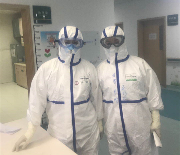 这些工作对于平常的我们来说,最大的困难应该是重度依赖的患者、条件血管条件差的老年人,而现在的我们全身穿着厚厚的防护服、护目镜、手套等防护用品,更是增加了我们的护理难度。身穿这些防护用品,多走几步、多说这几句话都让我们觉得气促,更何况还要要求我们隔着手套触摸血管,睁大眼睛、屏住呼吸、聚精会神的操作,这无疑又是一项新的挑战。但面对这些高难度的挑战,我们无人退缩,无人抱怨,反而尽心尽力做好本职工作。