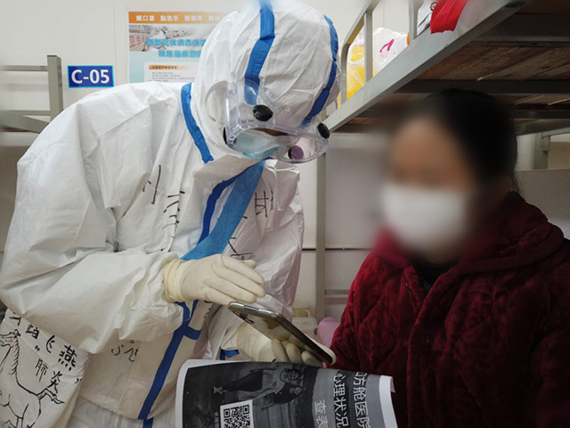 当天晚上,李学蕊随甘肃省第三批援助湖北医疗队抵达武汉天河国际机场,经过了两天的培训和练习后,李学蕊正式进入沌口方舱医院展开救治工作。进舱后,李学蕊才真切感受到方舱医院的不同,她被厚厚的防护服包裹,护目镜里全都是雾气,完全看不清人,即便如此,她和队友们依然坚持了6个小时。在这里,她不仅仅需要为患者做好医疗护理和生活护理,更要倾听患者的内心,为大家做好心理疏导,抚慰大家安心治病,帮助患者树立战胜病魔的决心与信心。
