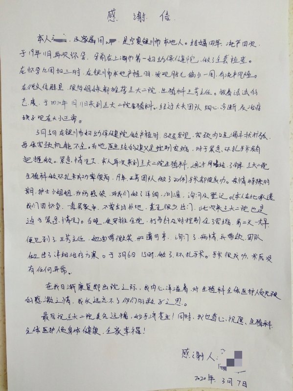 疫情时期,送给兰大二院生殖医学科的一封感谢信