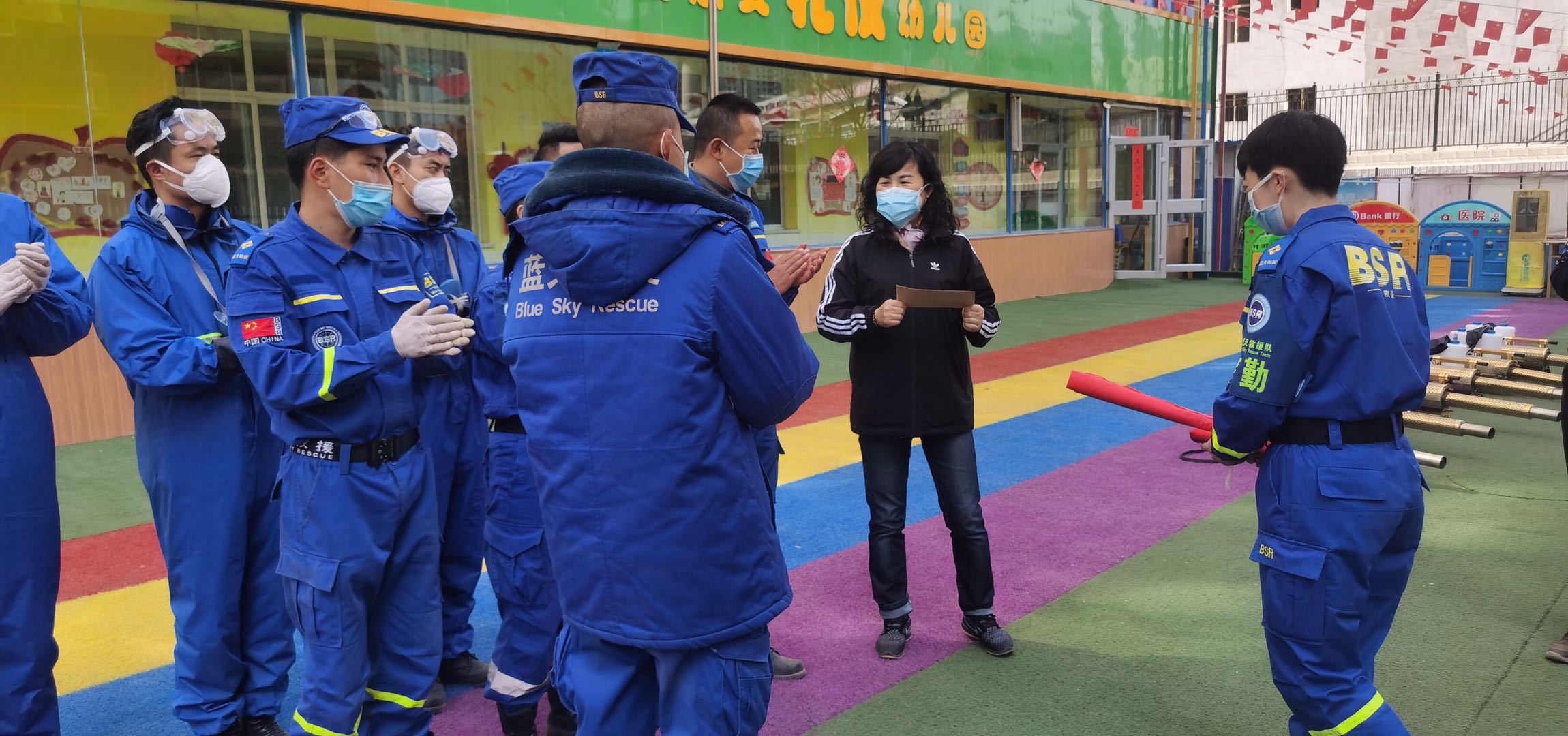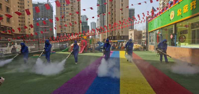 蓝天救援队队员亲自示范和指导我院医护人员穿好防护服,带好护目镜和手套,背起几十斤重的消毒喷雾器,认真对幼儿园教室、活动室、休息室以及操场进行全面消毒。惠安幼儿园占地近1000多平方米,此次将其作为消杀的场所,不仅能提高大家的防疫观念,更能为小朋友们提供一个健康的学习环境。