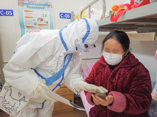消化内科护师陈姣姣每天的工作重点是测量生命体征、采血登记、办理出入院、分发食物等等,处处皆是她们的抗“疫”战场。防护服和口罩隔开了病毒,却隔不开她们的温暖,正是这份温暖帮助患者驱散阴霾,重拾希望。