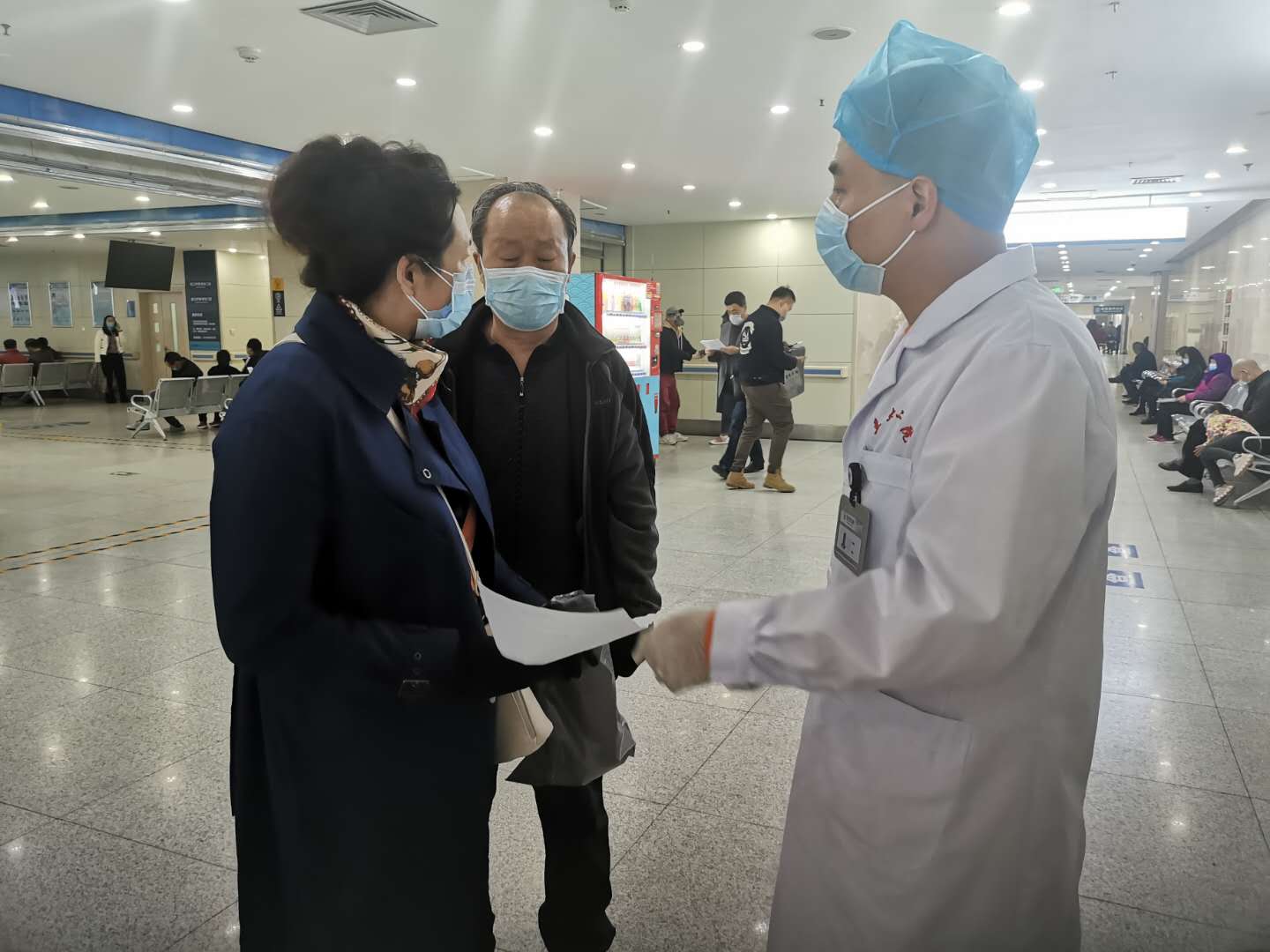 而这些工作只是志愿者团队疫情期间工作的一部分。在门诊导诊台,也有志愿者们的身影,他们帮助医院分流患者,给患者明确的引导,使患者能够准确及时就诊。人事处段旭亮表示很荣幸参与志愿者工作,“投身志愿服务,我深刻体会到自身肩上的使命感和责任感,当我在导诊台主动帮助患者后,看着他们笑着离开,对我也是一种肯定与鼓励。社会需要这份崇敬的爱,有一种精神叫奉献,有一种职责叫志愿。把自我的快乐融入到服务过程中,用自我的微笑和活力去感染每一个需要帮助的人。”