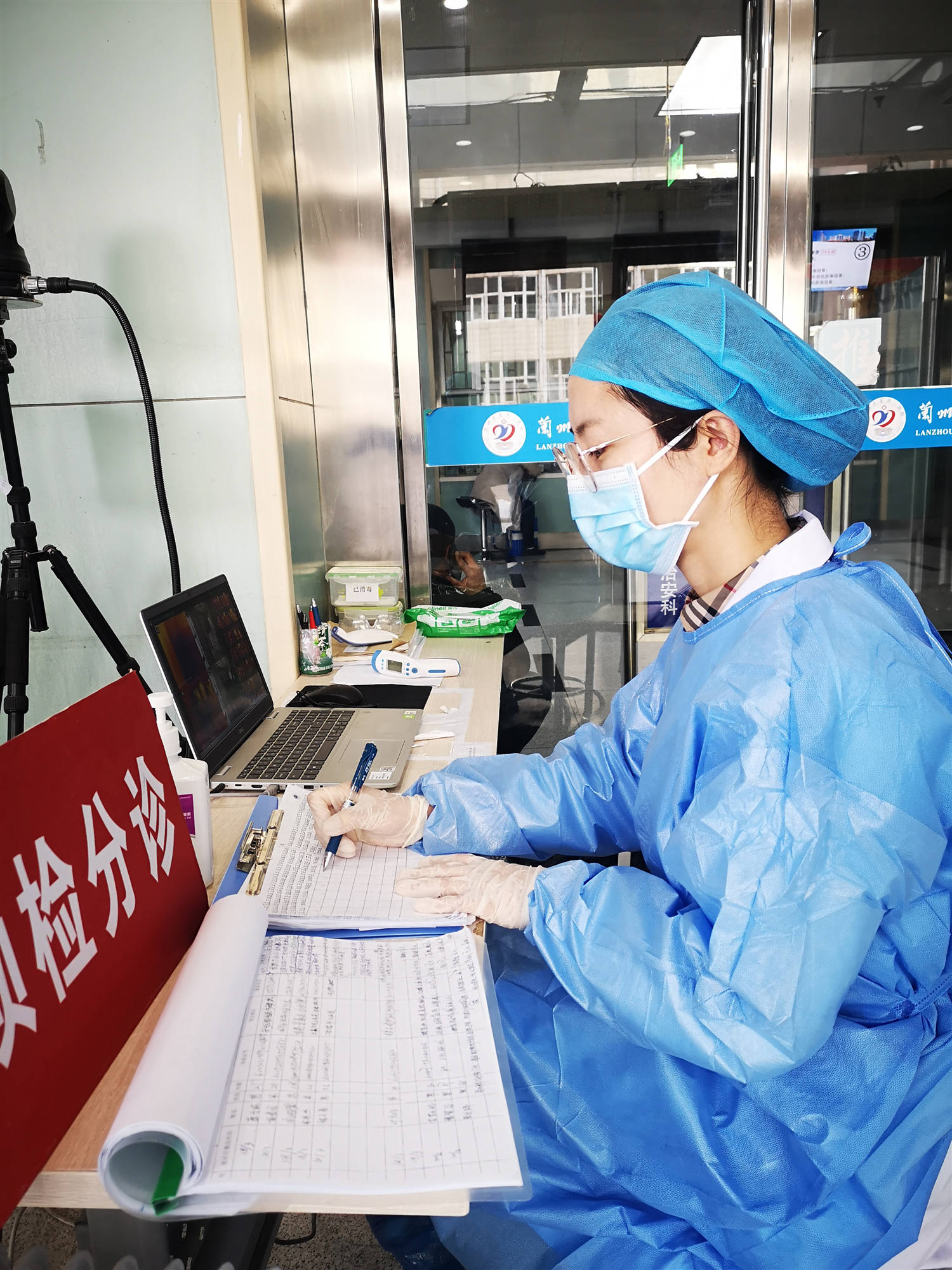 来自院长办公室督查科的刘欣,加入医院开展的预检分诊工作已有2个月了,从岁寒到春回大地,他和预检分诊的同事们夜以继日的坚守在医院疫情防控的前沿阵地。他们的日常工作就是对来院人员进行一测三问,在进入口做到严防死守,不漏一人。“这场疫情成千上万的医务人员不顾安危的奔赴一线,我身为兰大二院的一员,在疫情来临时责无旁贷,这是职业使然。在这里,我们是身披铠甲、手持利刃的战士,誓要遏制疫情,这也是我们对患者、对医院同事的一份责任与担当!”