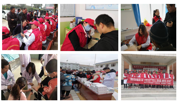 帮扶期间,医疗队在县卫健局、县医院的组织带领下,开展健康扶贫、义诊活动5次,接待前来求诊的群众共计800余人,免费血压测量300余人、免费发放药品、免费发放健康指导手册800余册,并进行多项问卷调查、急救演练等健康宣教活动,为当地百姓提供了更加优质的医疗服务,同时参加陇西县全国药博会医疗安全保障工作,为药博会的顺利召开保驾护航。