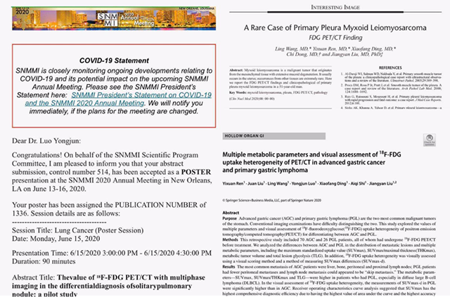 近日,我院核医学科科研工作取得较好成绩,4月份连续发表SCI论文2篇,1篇研究成果入选2020年北美核医学与分子影像年会(SNMMI)交流。