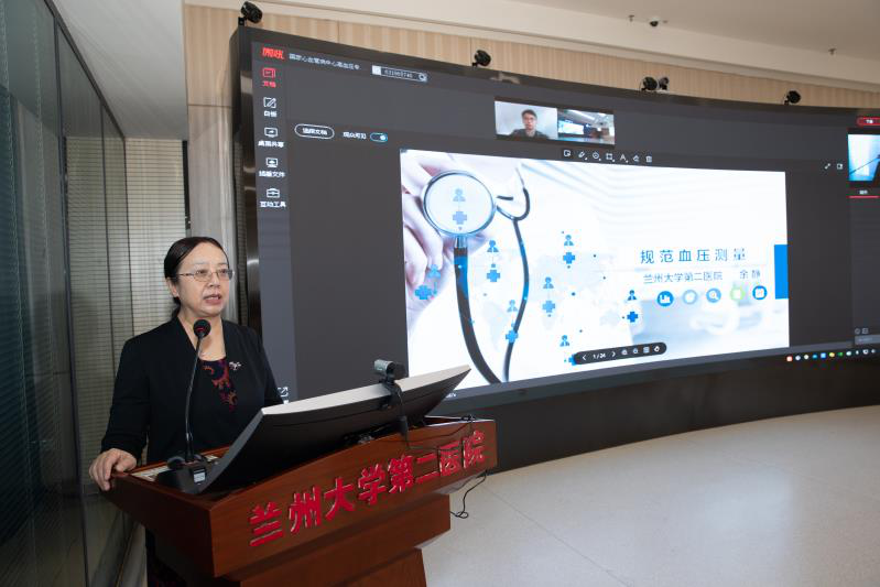 高血压专病医联体甘肃兰州市分中心分别为:兰州市第一人民医院和兰州市第二人民医院。两个市级分中心共纳入了兰州市34家二级医院和卫生院作为成员单位。通过现场直播的方式,余静教授、兰州市第一人民医院心内科范晓涌主任、兰州市第二人民医院心内科陶玲主任、兰大二院心内三病区王琼英主任进行了“血压的规范测量”等高血压质控项目培训。国家心血管病中心高血压专病医联体办公室技术部主任张豪在线北京介绍了“国家高血压专病医联体信息平台”的工作。