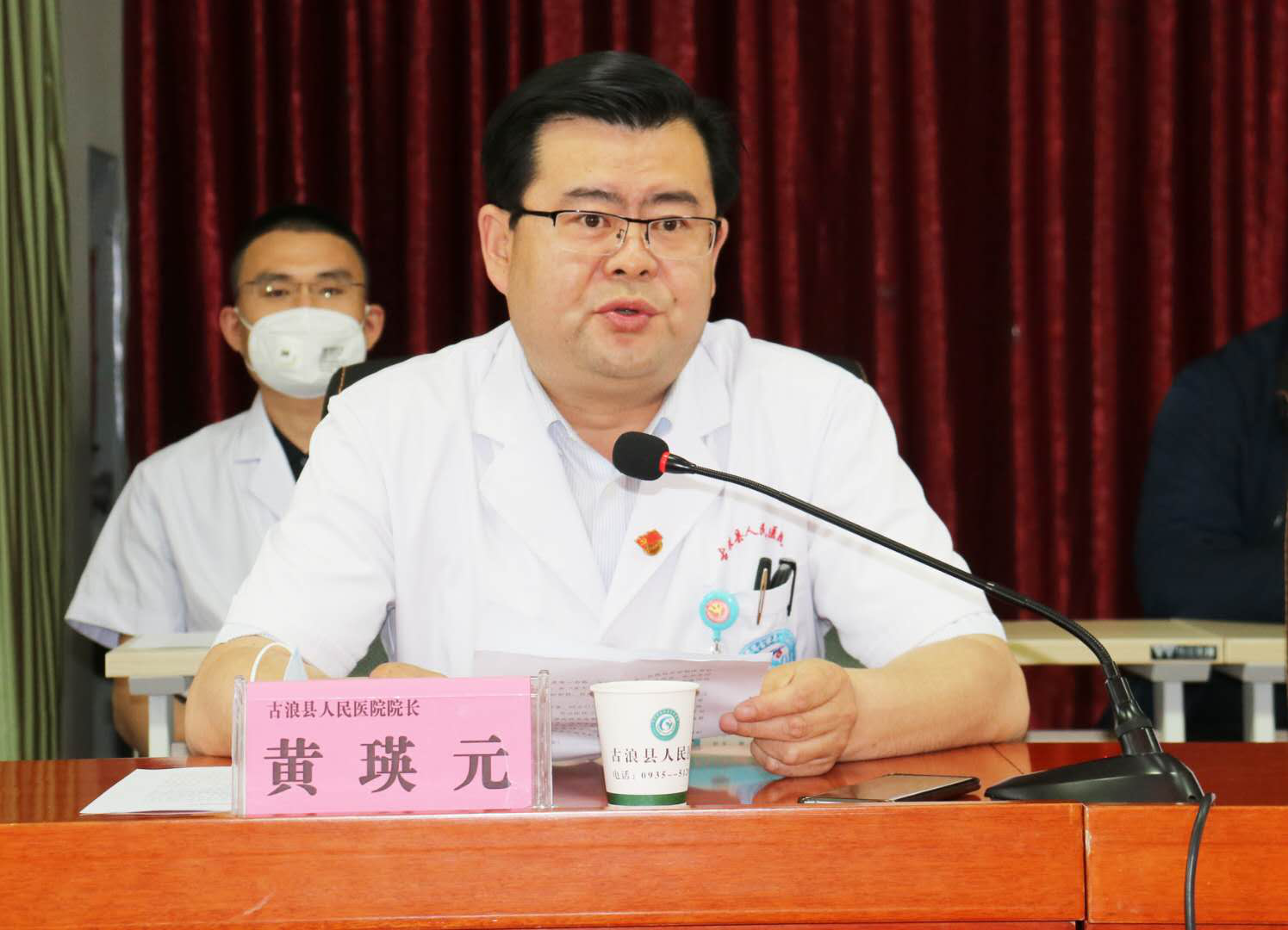 在骨科专科联盟授牌仪式上,古浪县人民医院院长黄瑛元致开幕词。他代表古浪县人民医院对我院骨科专家们的到来表示欢迎及感谢,康学文教授代表兰大二院骨科致辞,张海鸿教授向古浪县人民医院授牌。