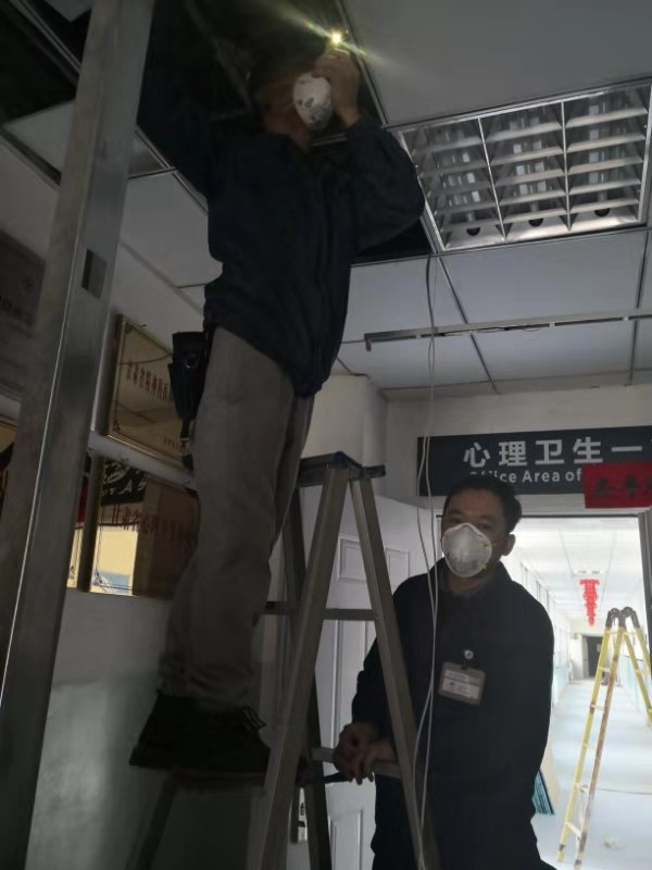 做到随叫随到:疫情期间,24小时待命,每日对所有配电室进行安全巡查,对病员及医用电梯进行了调整,热力科维修班及空调班对医院上下水道、中央空调及新风系统进行维护,安排专人对全院上下水井盖、空调及新风系统设备进行消毒。