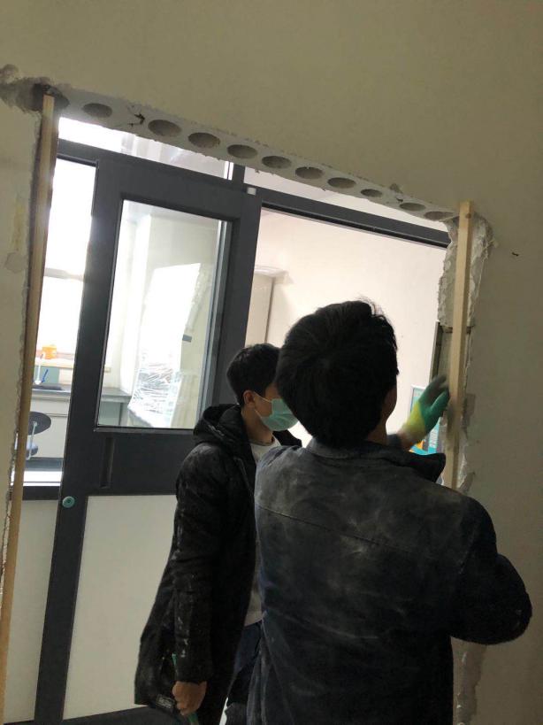 2月11日接到医院新冠肺炎核酸检测室改扩建,经过两天加班加点,新冠肺炎核酸检测室改造项目终于完成,封堵检测室窗户周围15米范围内所有窗户20余个、新风系统改造,检测室窗户改造、吊顶改造、传递窗安装、拆墙破洞配合设备进场,圆满完成改造工作。