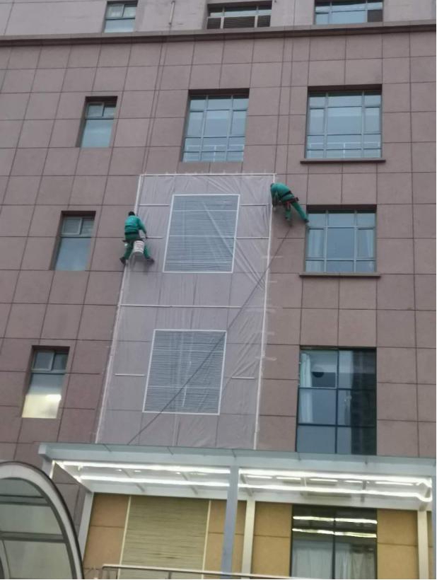 2月13日在突然变天,气温下降并伴有4级大风,对高空作业人员施工难度极大,热力科及施工人员克服各种困难于当晚7时完成住院部①北侧新风设备入口封堵工作。