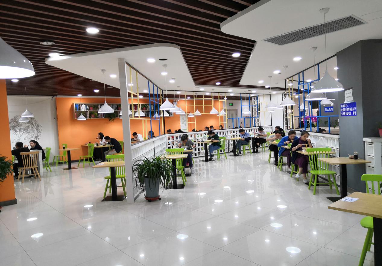 根据疫情发展情况,为保障医护人员及患者陪员的正常餐饮堂食供应,4月13日恢复堂食,按规范进行就餐人员隔凳(椅)就座,间隔保持在1米以上,入口处设立体温检测通道凡进必检;进入餐厅必须佩戴口罩、做好“手消毒”;工作人员全程佩戴口罩工作,严格遵守消毒流程、并详细记录;为方便医护人员临时就餐,鼓励就餐人员打包带走餐品、网络公众号订餐、引导职工分时分批错峰进店就餐;减少密集接触,并增派人员,提升打餐速度。